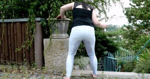 Check out Ally getting her white pants wet!